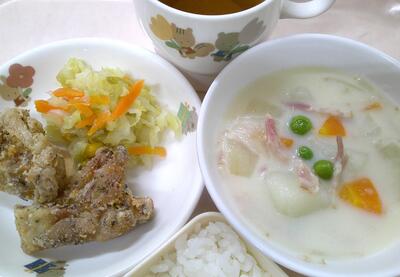 やきいもやきいもお腹がぐ~ ほかほかほかほかあちちのちー 食べたらなくなるなんにもぱー それやきいもまとめてぐーちーぱー 朝から大合唱のりす組です。 お外に焼き芋を見に行くために、 上着、靴下もできるところは自分で準備します。 「こっち~?」 「できん~」と言う子もいますが、黙々と頑張る子も増えています。 “自分で”できた達成感は格別ですね! あそこに芋があるだよ~ というものの、「???」芋は発見できず、不思議そうに眺める子ども達でした。 離れていても、火の暖かさを感じましたよ。 完成まで、健康村を散歩♪ 園に戻ると・・・ 美味しそうな焼き芋が待っていました!! 早速部屋でいただきましたよ! 「芋~」」 「おいしい~」と あっという間に食べてしまいましたよ。 その後の給食もペロリ完食でした。 焼きたてのお芋、とってもお美味しかったね♪