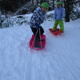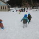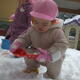 雪がたくさん積もりましたね。 「お外行こうか」と保育者が言うと「やったー!」と、お部屋で遊んでいたおもちゃをすぐに片付けたり、雪遊びの準備をテキパキしたりと、早く雪遊びがしたい気持ちが伝わってきました。 園庭に出ると、長靴が埋もれるほどの積雪でしたが、みんなが気にすることなく、どんどん歩いたり雪を触ったりしていました。 砂場の道具でお料理作り。器に入れたり混ぜたりして、たくさんのごちそうができましたよ。 大きいクラスのお兄さん・お姉さんも園庭に出ていて「ここ座って」「道作ってあげるけ!」と優しく声をかけてくれました。一緒にそり遊びをしたり、雪をネコ車で運んだりして、たっぷり雪遊びを楽しみました。