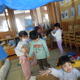 年長児としてがんばってきた当番活動を、きりん組に引き継ぐ「きりんさん、がんばってねのかい」をしました。 きりんさんに、当番のやり方が分かるように、グループごとで話し合い、写真や言葉で伝えられるよう準備してきました。 前に出て説明するのは「緊張するなぁ」 「ちょっと恥ずかしいな」という子もいましたが、きりんさんを迎えると、どの子もがんばって発表する姿が見られ、お兄さんお姉さんとして張り切っているのを感じましたよ。 布団敷きの時は、きれいに布団を敷くよ。 これは、ほうきです。テラスをきれいにします。 給食の食材カードの仕分けも、当番がしています。 この材料から、今日のメニューが分かるかな? 「雑巾集めの説明をします!」 大きな声で堂々と発表しました。 ぞう組が発表している間、いい姿勢で、キラキラのまなざしで、しっかりと話しを聞いてくれたきりんさん。 質問もたくさんしてくれてやる気いっぱい! 「これから頑張るぞ!」という心意気も伝わってくるようでした。 ぞう組の子ども達も「きりんさんが静かに聞いてくれて嬉しかった!」とほっとした様子でしたよ。 最後は、みんなのリクエストで、しっぽ取りやドッジボール、フープ取りを楽しみました♪ たくさん動いて、みんなで遊んで、心も体もぽっかぽかでした! ぞう組がきりんさんを抱っこやおんぶで連れていく姿も可愛かったです♡ 来週から一緒に当番をすることを楽しみにして終わりました。 新しいことをする時には不安や心配もあるかもしれませんが、教え合いながら慣れていけたらなぁと思います。 ぞうさん、きりんさん、一緒にがんばろうね!