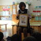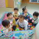 しゃくなげ号お話会があり、図書館の方が持ってこられる絵本袋からどんな絵本が出てくるのかみんなワクワクしていました。 「こぶた・たぬき・きつね・ねこ」の歌をイラストを見ながら歌います。 次は「おおきなかぶ」の大型絵本。「この本おうちにもあるよ!」と嬉しそうです。絵本が大きくて興味津々でした。 こあら組さんジーっと真剣に絵本を見つめ絵本の世界を楽しんでいます。 ぱんだ組さん「うんとこしょ!どっこいしょ!まだまだかぶはぬけません」読み手の方と一緒にセリフを言います。 「どれにしようかな・・・」とおにぎりを選ぶお話。梅干しおにぎりは酸っぱい!!と声が上がります。 みんな大きくなってお話を聞く様子に成長を感じます。楽しかったね!