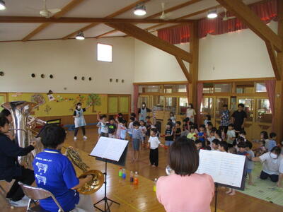 最後は子ども達の知っている「勇気100%」の曲を演奏してもらいながら鳴子を使って踊るという素敵なコラボも楽しめました♡生演奏の心地よさを全身で感じらられる素敵なひと時となりました。