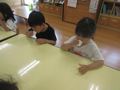 『あついあつい』『ひまわり』という絵本を読んでいただきました。夏にちなんだお話を読んでいただきましたよ。