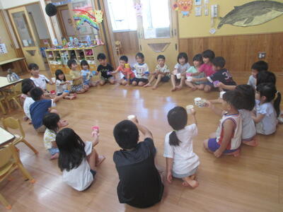 暑~い季節に生まれた9名のお友達をみんなでお祝いしました!