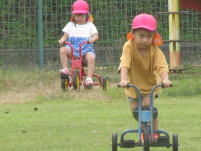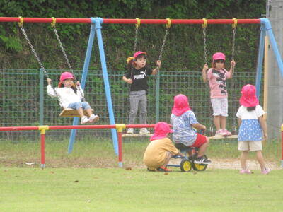 朝の涼しい時間から園庭に出て、1時間ゆっくりのんびり遊びました。