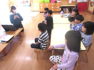 「朝ごはん何食べた?」「賀茂保育園って何して遊ぶ?」などなど、はずんでいましたよ。