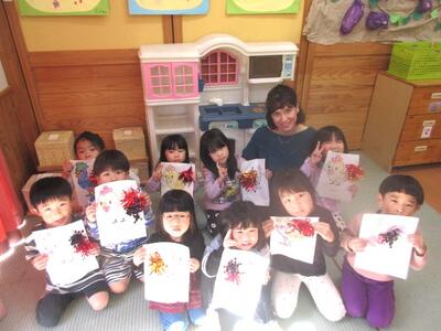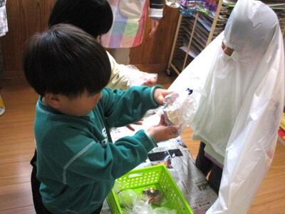 キラキラでふわふわのしっぽをつけてもらって、みんなで製作もしました。