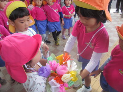 こども園からは花束、賀茂保育園さんからはブレスレットを頂きました。