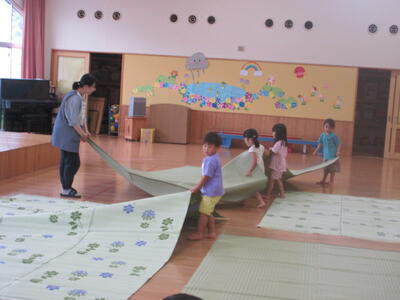 ということで、ぞうさんの代わりに布団敷きをしました。