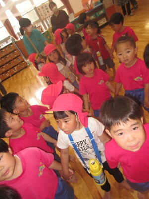 頑張った自分を褒めようと頭をなでて、頑張ったお友達を褒めようと拍手して、さいごはみんなで「バンザーイ!」しました。