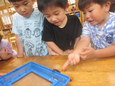 カブトムシのおしっこはマヨネーズみたいなんだと知ったきりん組です。