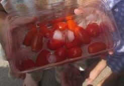 いつものテーブルに集まって、冷たーいミニトマトを喜んで手に取りました。