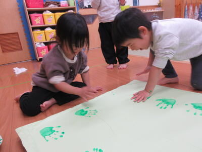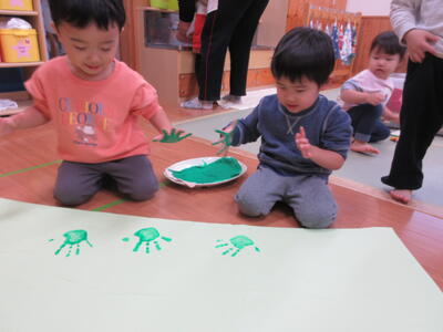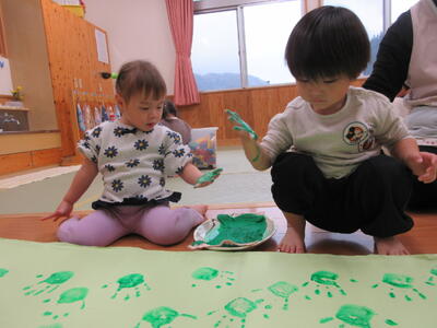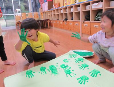 絵具の感触が嬉しくてニコニコと笑ったり、友達と見せ合ったりしていましたよ。