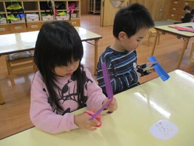 こいのぼり作りもしました。今日は目を作りましたよ。円を切るのも上手でした!
