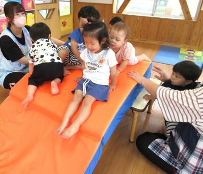 傾斜マットをさらに傾斜をつけてすべり台の様にしたり