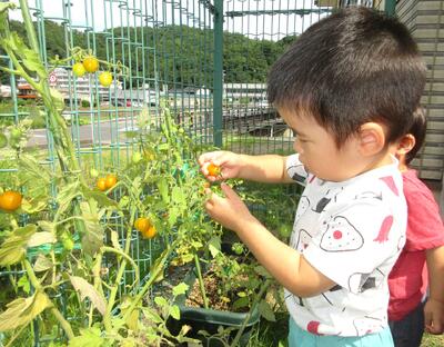 黄色いアイコトマトは、とても甘くて大人気でした!みんなが、おかわりを何回もしてました!