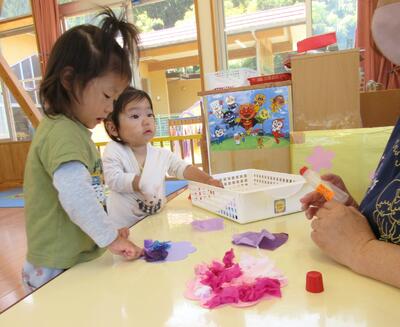 もうすぐ6月、そして梅雨の季節にもなりますね。りす組は一足早く、あじさいの製作を始めました。一斉に取り組むのはまだ難しいので、ままごと遊びをしながら一人ずつ順番に取り組みました。明日以降も少しずつ続きをしていく予定ですので、完成をお楽しみに・・・