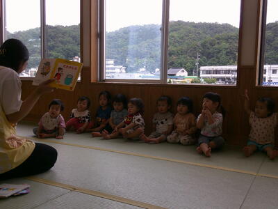 絵本の読み聞かせも、真剣な表情で見たり繰り返しのある絵本は真似したり、色々な言葉や単語に反応してくれる子ども達。今の時期は言葉の獲得時期でもあります。絵や文字、言葉に触れる時間を大切にしていきたいですね。