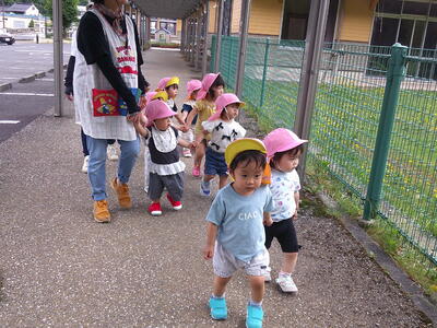 いつもは、避難車(バギー)に乗って行くお友達もいたのですが、