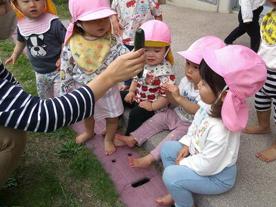 気温が高くなってきました。水分補給をこまめにしながら戸外での活動を楽しんでいきたいと思います。