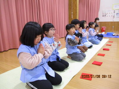 「お粥は、苦手・・・」 「あんまり食べたくないな・・・」と言っている声も聞かれましたが、自分達で七草を切ったからか、「おかわりする!」という子どももいたほどです。