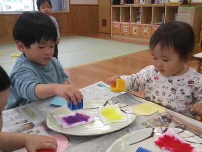 まだ、黄色を持ちながら「ピンク~」と言ってしまうお友達もいます。