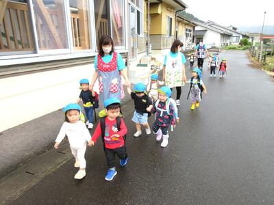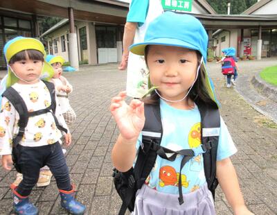 朝から天気が心配されましたが、なんとか遠足に行くことが出来ました。お弁当は園で食べる予定にしていたので、中身が空っぽのリュックサックを背負い、遠足気分で健康むらまで行って来ましたよ!