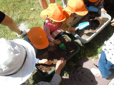 野菜を植えます。ちゃんと土をかけて植えてくれました。