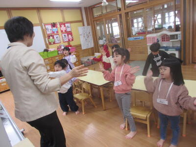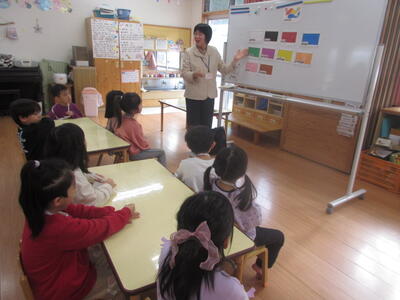 月に1回の英語活動、今日も足立先生と一緒に英語で遊びました。