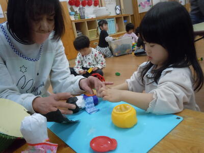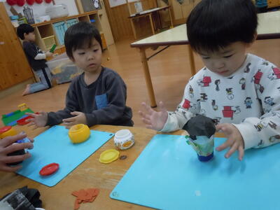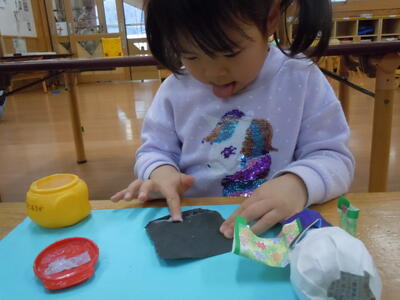 ひな人形作りをしました。待ちに待った人形に顔をかくときがやってきたと喜んで製作していましたよ。