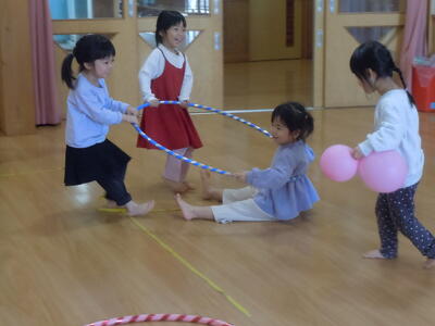 フープが回せるようになってきたお友達が増えてきましたよ。回せると嬉しくて何度もチャレンジするから上達も早いです。