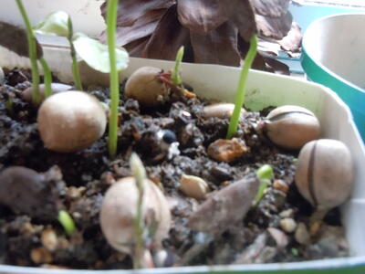 秋に植えたどんぐりも柿の芽に続いて芽吹いてきました。ようやく春の訪れですね。