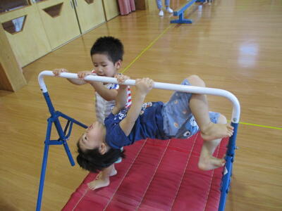 ぶら下がっちゃうよ!鉄棒を握る力もしっかりしているね!