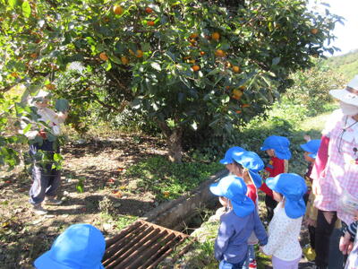 地域の方に「おいしい柿だよ」 「天ぷらや、バター焼きでもおいしいよ」と教えていただき、保育者も新たなことを知ることができました。