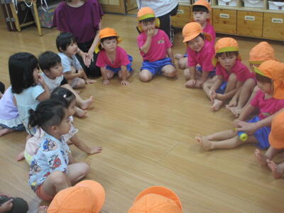 逃げるのではなく、ボールに向かって行ったり、取りに行ったり、線から出たり、いろいろな姿がありましたが、ボールが転がる度にキャーキャー楽しそうでした。
