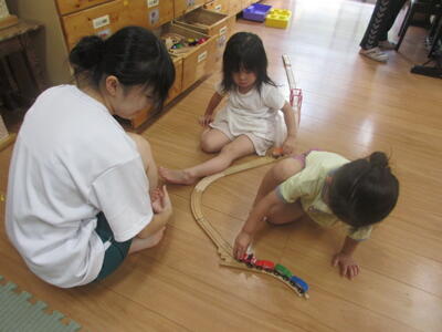 高校生のボランティアのお姉さんと一緒に遊びました。