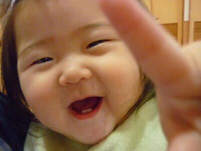 保育者に抱っこされてご満悦♡とびきりのスマイル、可愛いですね!