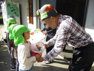 ぞう組は、三朝地域協議会の方に感謝状とお花を渡すことができました。