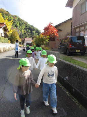 健康村広場でたくさん歩きました。枯葉が落ちていて興味津々の子ども達でした。