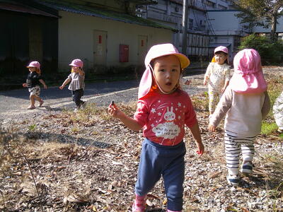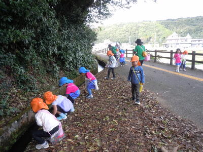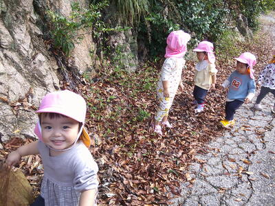 楽しみにしていた年少児交流会がありました。いい天気になったので遊歩道へ散歩に出かけました。