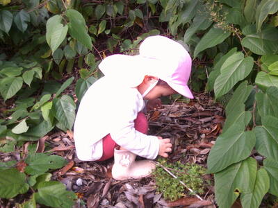 カニを探しながら歩きました。石を動かしてみたり、葉っぱをめくってみたり・・・
