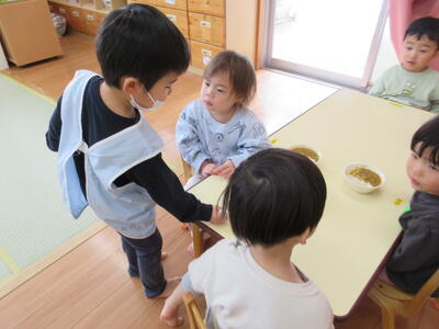 これから毎日、2人ずつ順番に当番をしていく予定です。当番ではない子も、「僕もしたーい」と自分の番になるのを楽しみにしているようでした。