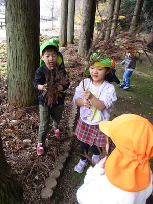 杉枝拾いは終わったので園庭で遊びました。明日が楽しみです!