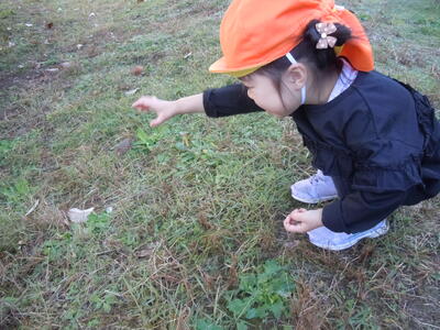 「ちょっと、どんぐりころがしてみる。」草が邪魔で転がらなかったようで、「ころがらなかった~。」と言って投げていました。