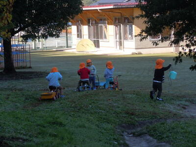 良い天気になると、外に出たくて外遊びを期待しているみんな。「外遊びしようか?」と言うと「やったぁ~!」と元気に言い帽子を被って早々とドアの前に並び始めます。