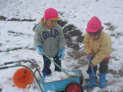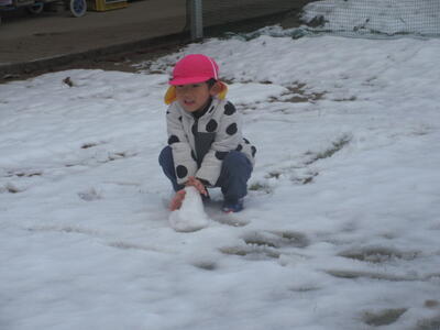 3㎝程ですが園庭に積もった雪を見たら、雪遊びせずにはいられませんよね!