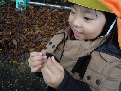 「せんせい、むらさきいろの実があったよ。」と見せてくれました。小さな指にも隠れてしまう、小さなむらさきいろの実でした。