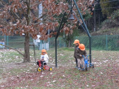 杉枝拾いは終わったので園庭で遊びました。明日が楽しみです!
