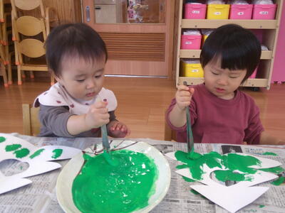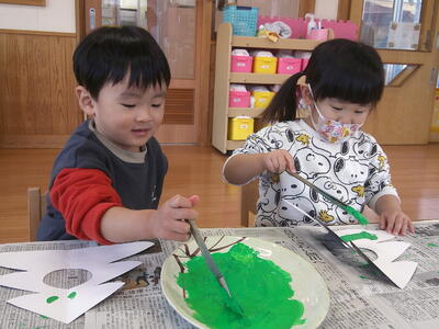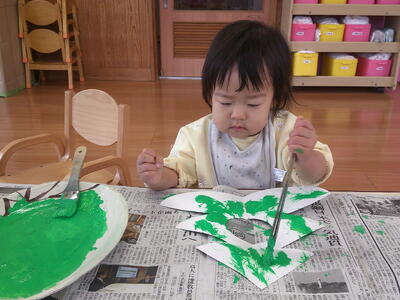 同じ筆を使う製作でも子ども達にとっては、様々な表現になります。