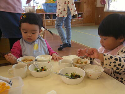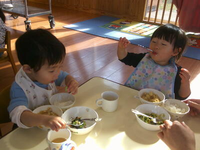 日々の積み重ねで、フォークやスプーンでの食事も上手になってきましたよ♪