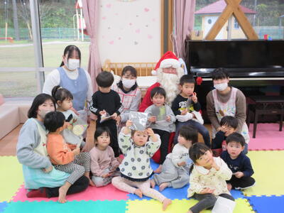 一人ずつサンタさんからプレゼントをいただいたり、タッチをしたりして、楽しい嬉しいクリスマス会となりました。